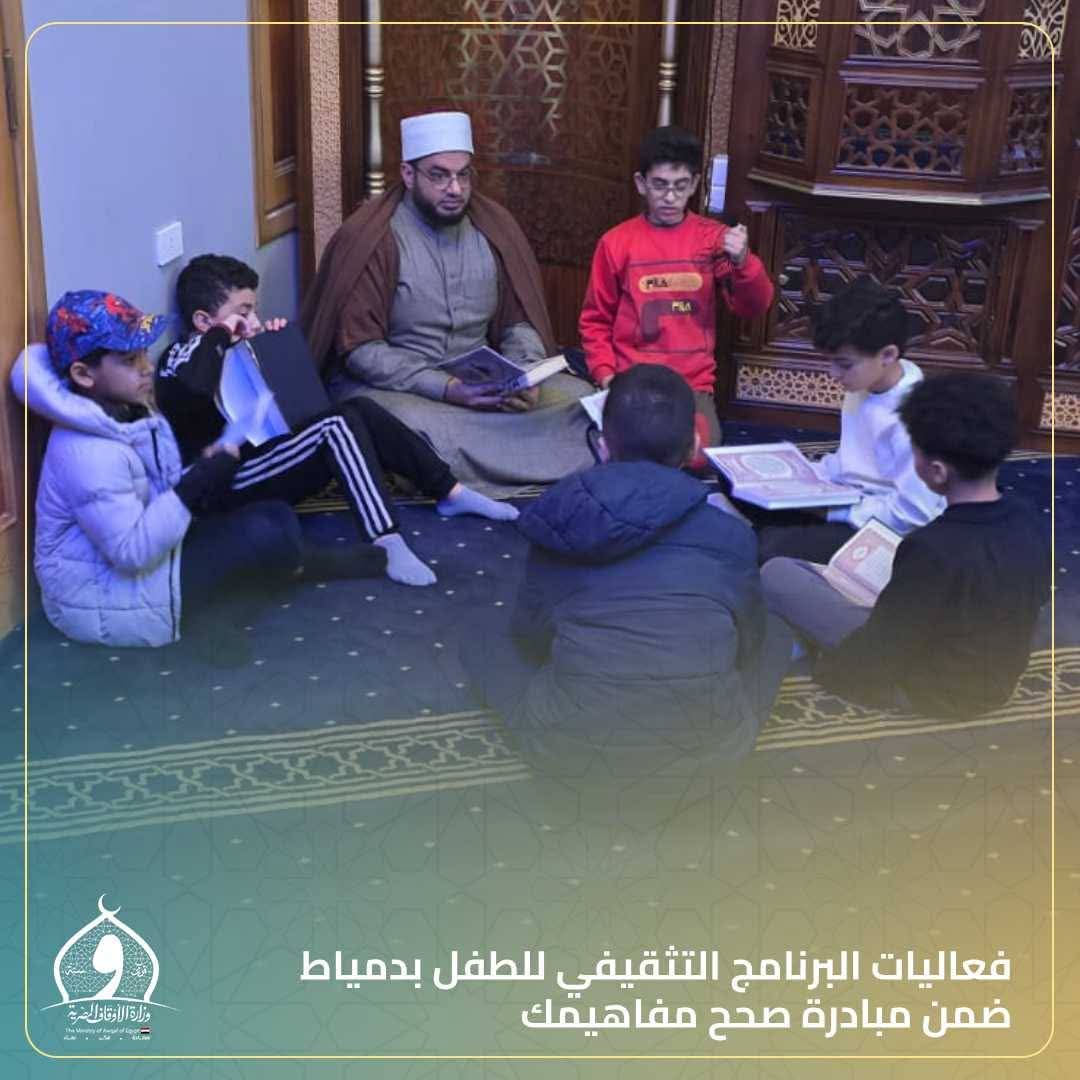 وفي هذا السياق، نظمت مديرية أوقاف دمياط فعاليات البرنامج التثقيفي للطفل بالمساجد، بمشاركة الأئمة والواعظات، وذلك ضمن مبادرة صحح مفاهيمك، التي تستهدف غرس القيم الدينية الصحيحة، وبناء الوعي الفكري والسلوكي لدى النشء، من خلال أساليب مبسطة تتناسب مع أعمار الأطفال.