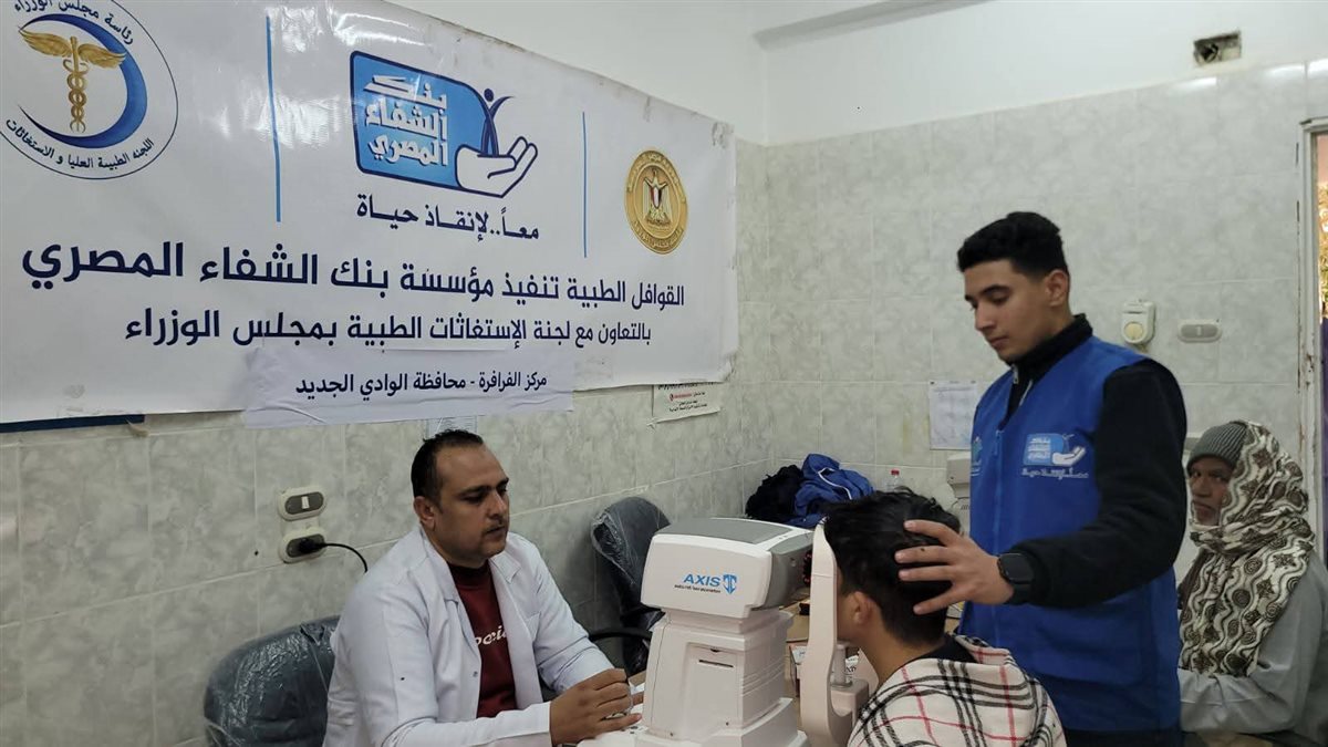 أنهت مديرية الشئون الصحية بمحافظة الوادي الجديد فعاليات قافلة طبية متكاملة، نفذتها لجنة الاستغاثات الطبية بمجلس الوزراء، بالتعاون مع مؤسسة بنك الشفاء، وذلك بمستشفى الفرافرة المركزي على مدار يومين.