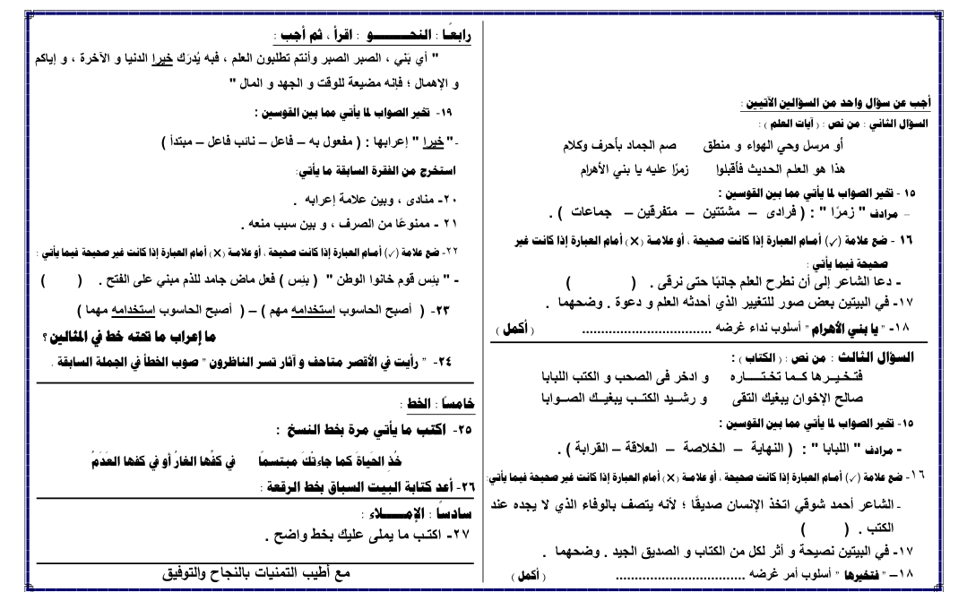 بعد الشكاوى من صعوبته وتشكيل لجنة بشأنه، أول صورة لامتحان العربي للشهادة الإعدادية بالمنوفية