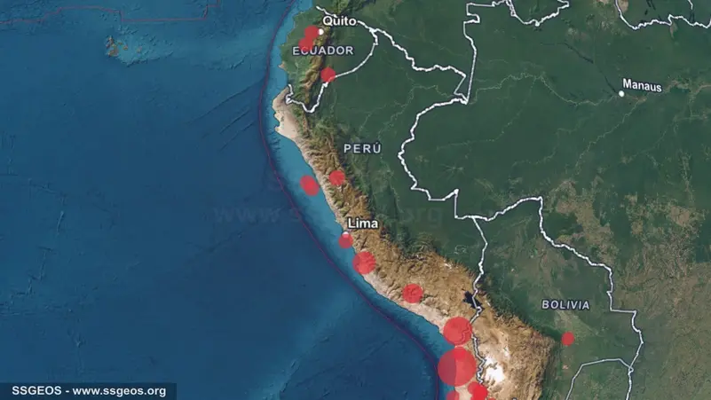 وأضاف أنه قد تجمعت الزلازل الكبرى (بقوة 7 درجات) في السنوات الأخيرة في أمريكا الجنوبية بشكل أساسي تحت بيرو والإكوادور، ما أدى إلى زيادة الضغط في المنطقة بالقرب من الساحل.