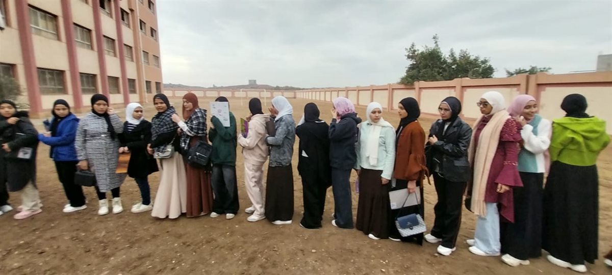 توافد طلاب وطالبات الشهادة الإعدادية في محافظة الدقهلية على 599 لجنة في طوابير للخضوع للتفتيش الذاتي قبل بدء امتحان الجبر والإحصاء ثالث أيام مارثون الامتحانات للفصل الدراسي الأول.