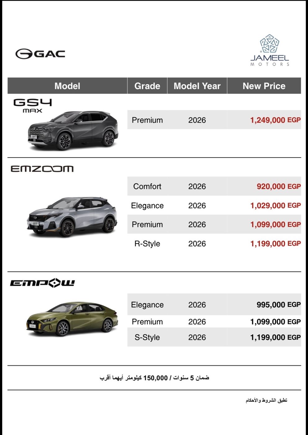 أعلن الوكيل المحلي لعلامة"GAC" في مصر، عن تحديثات سعرية جديدة على طرازَي GS3 Emzoom وGS4 MAX، فئة السيارات الرياضية متعددة الاستخداماتSUV، وتعكس هذه الخطوة توجهًا واضحًا لدعم المستهلك عبر سياسات تسعير مرنة، تهدف إلى إتاحة سيارات GAC التي تجمع بين الأداء القوي، والتكنولوجيا المتقدمة، والتصميم المستقبلي، لشريحة أوسع من العملاء، دون المساس بمعايير الجودة أو مستويات الاعتمادية.