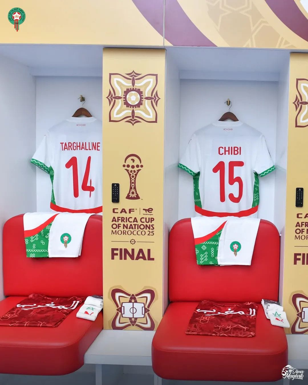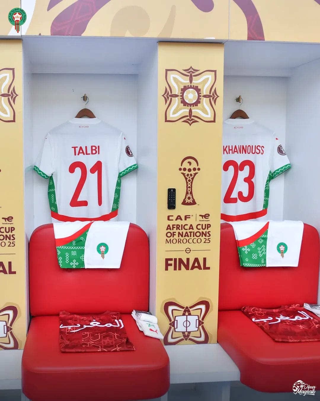 شاهد غرفة ملابس منتخب المغرب قبل مواجهة السنغال بنهائي كأس الأمم الأفريقية