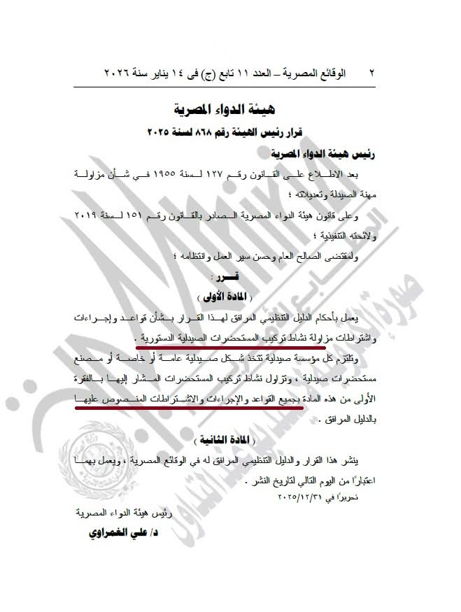 رحب المركز المصري للحق في الدواء بقرار هيئة الدواء المصرية المتعلق بتنظيم عمل التركيبات الصيدلية داخل الصيدليات، والذي لاقى استجابة واسعة من منظمات المجتمع المدني، باعتباره خطوة تعزز من إتاحة الدواء.