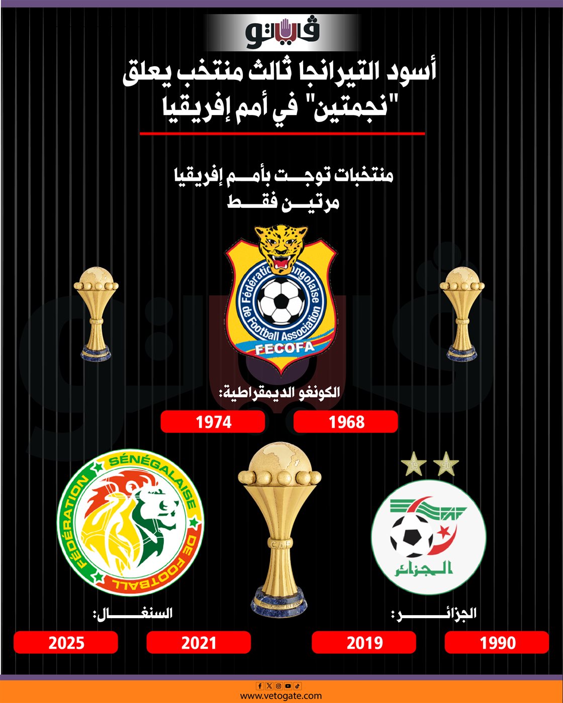 أسود التيرانجا ثالث منتخب يعلق "نجمتين" في أمم إفريقيا (إنفوجراف)