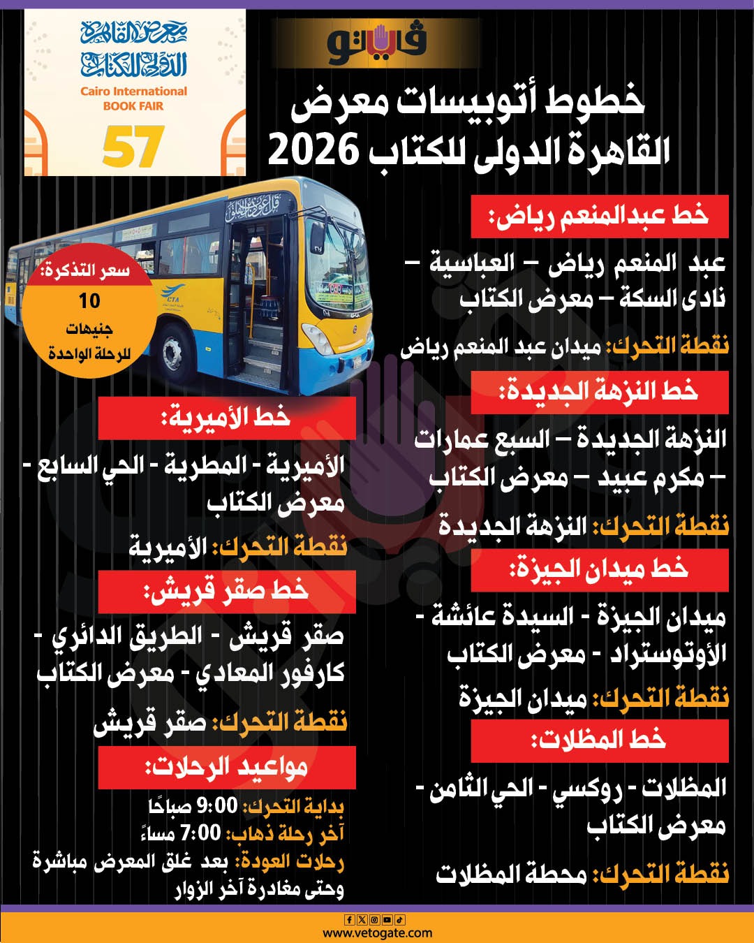 خطوط أتوبيسات معرض الكتاب 2026 (إنفوجراف)