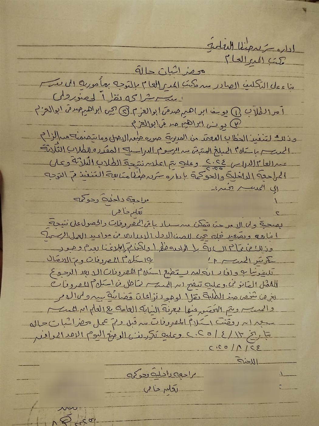 وطالبت أسرة الطفل بفتح تحقيق عاجل وشامل من قبل وزارة التربية والتعليم ومساءلة كل من يثبت تورطه في واقعة الاعتداء أو في الإجراءات التعسفية اللاحقة وكذلك محاسبة أي مسؤول تقاعس عن أداء واجبه القانوني مؤكدة أن التغاضي عن مثل هذه الوقائع يعد تهديدا جسيما لأمن وسلامة الطلاب ويقوض الثقة في المنظومة التعليمية.