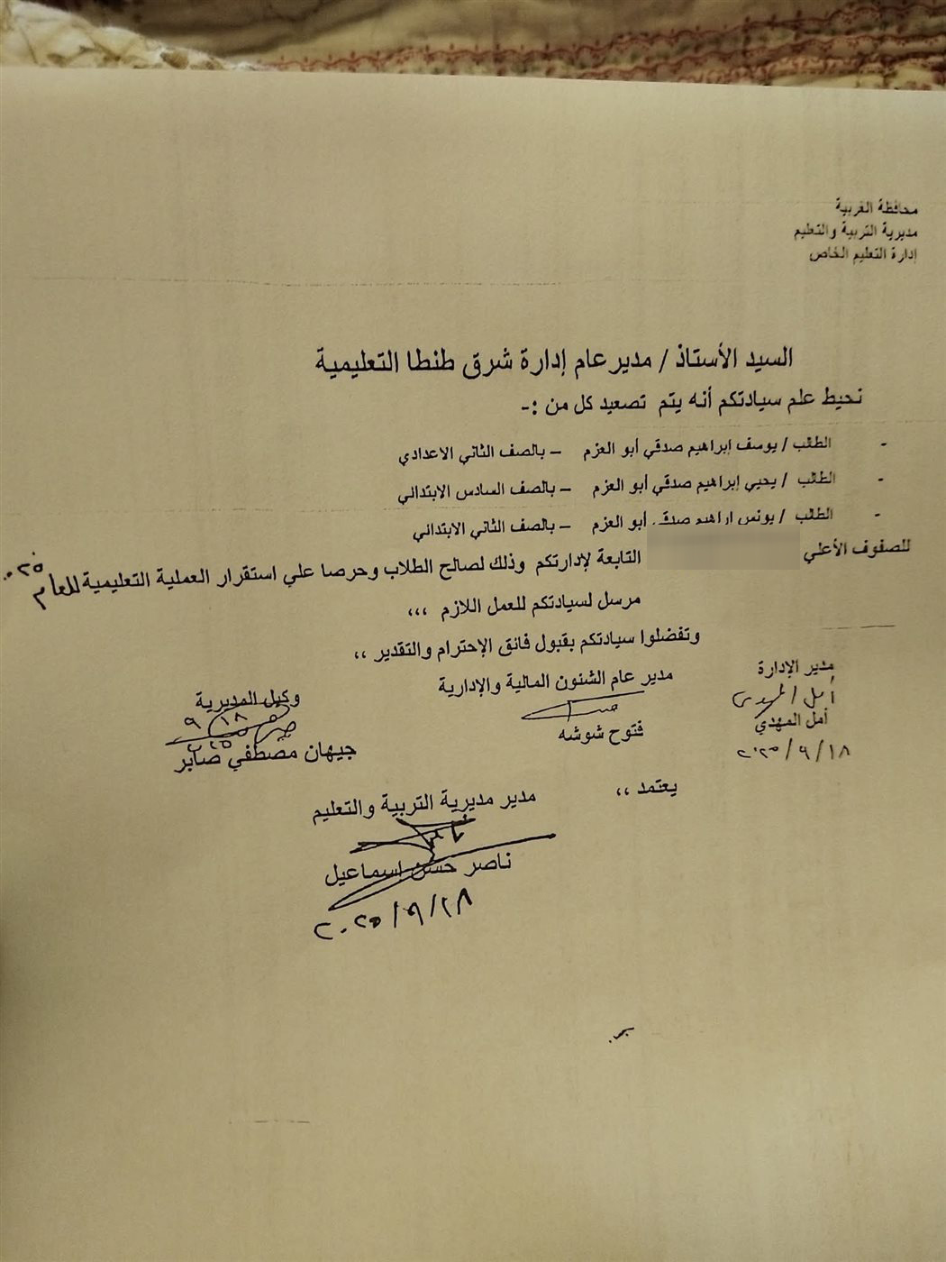 كما شدد على ضرورة تحقيق الانضباط الكامل داخل لجان الشهادة الإعدادية بدءا من البوابة الرئيسية وحتى داخل جميع قاعات الامتحان وسرعة التواصل مع مديري الإدارات التعليمية وغرف العمليات الفرعية للتعامل الفوري مع أي طارئ مع التحلي بالدقة والانضباط وتقدير المسئولية وتوفير المناخ الملائم لأبنائنا الطلاب.