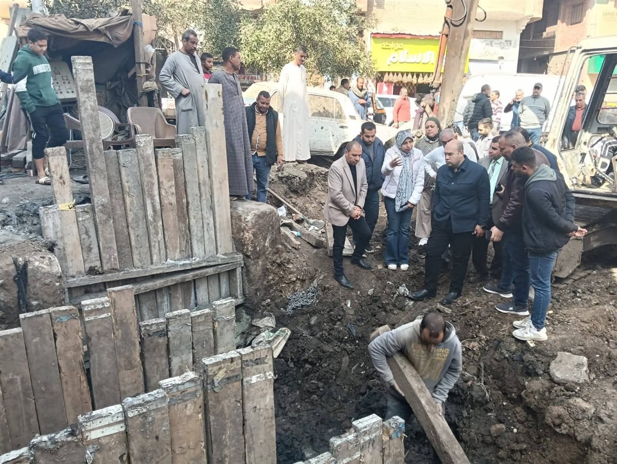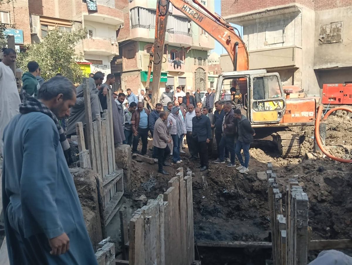متابعة مشروع الصرف الصحي بقرية ميت شماس