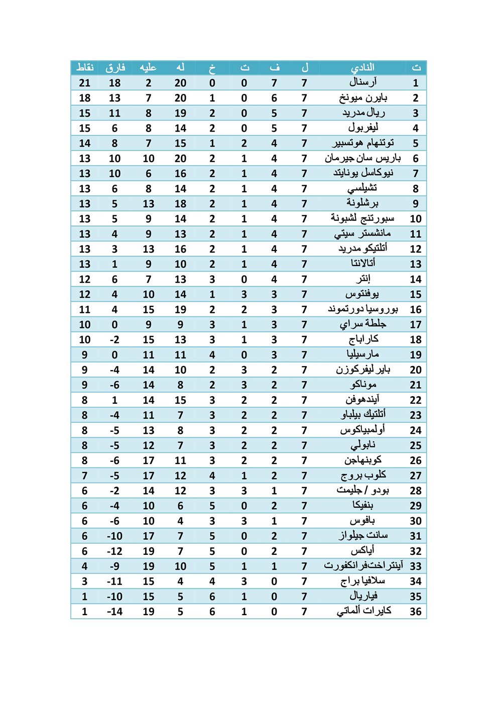 ترتيب دوري أبطال أوروبا بعد الجولة السابعة
