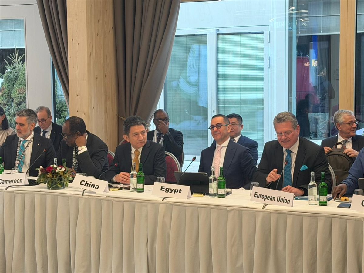 شارك المهندس حسن الخطيب وزير الاستثمار والتجارة الخارجية، في المؤتمر الوزاري المصغر للدول الأعضاء في منظمة التجارة العالمية، الذي تستضيفه سويسرا على هامش منتدى دافوس، تمهيدًا لانعقاد المؤتمر الوزاري الرابع عشر لمنظمة التجارة العالمية (MC14) في ياوندي بالكاميرون، خلال الفترة من 26 إلى 29 مارس 2026، وذلك بحضور الوزير المفوض وحيد كامل عدلي رئيس المكتب التجاري في جينيف.