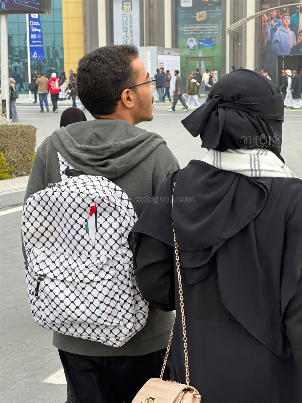 في لفتة عفوية تعكس وعي الجيل الجديد، لفت عدد من الزوار الشباب الأنظار وهو يتجول في أروقة المعرض مرتدين"حقيبة ظهر" تحمل علم فلسطين مطرزا بالكامل، وإلى جواره خريطة فلسطين التاريخية من البحر إلى النهر، هذا المشهد لم يمر مرور الكرام، حيث أصبح الشاب محورا للاهتمام واستحسانا كبيرا من المارة الذين بادلوه كلمات الثناء والدعم.