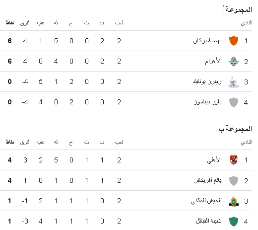 فيما يوجد الأهلي على رأس المجموعة الثانية مع يانج أفريكانز التنزاني والجيش الملكي المغربي وشبيبة القبائل الجزائري.