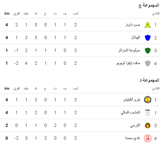 المجموعة الثانية: شبيبة القبائل الجزائري - الجيش الملكي المغربي - يانج أفريكانز التنزاني - الأهلي.