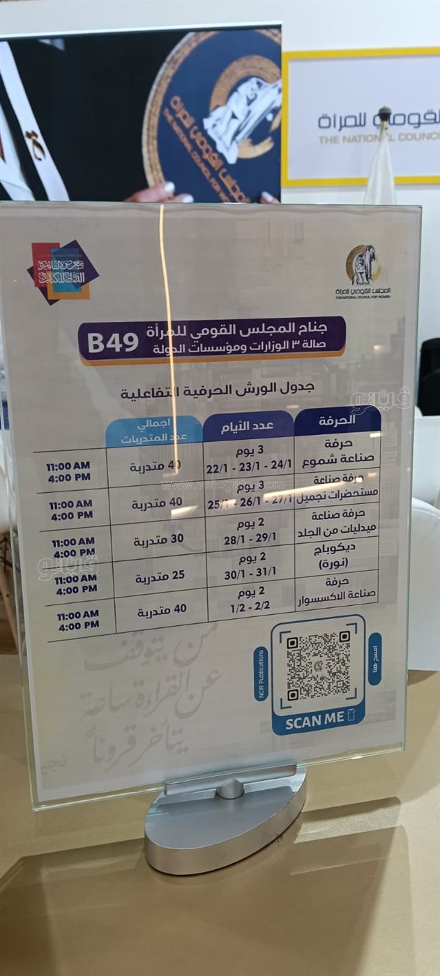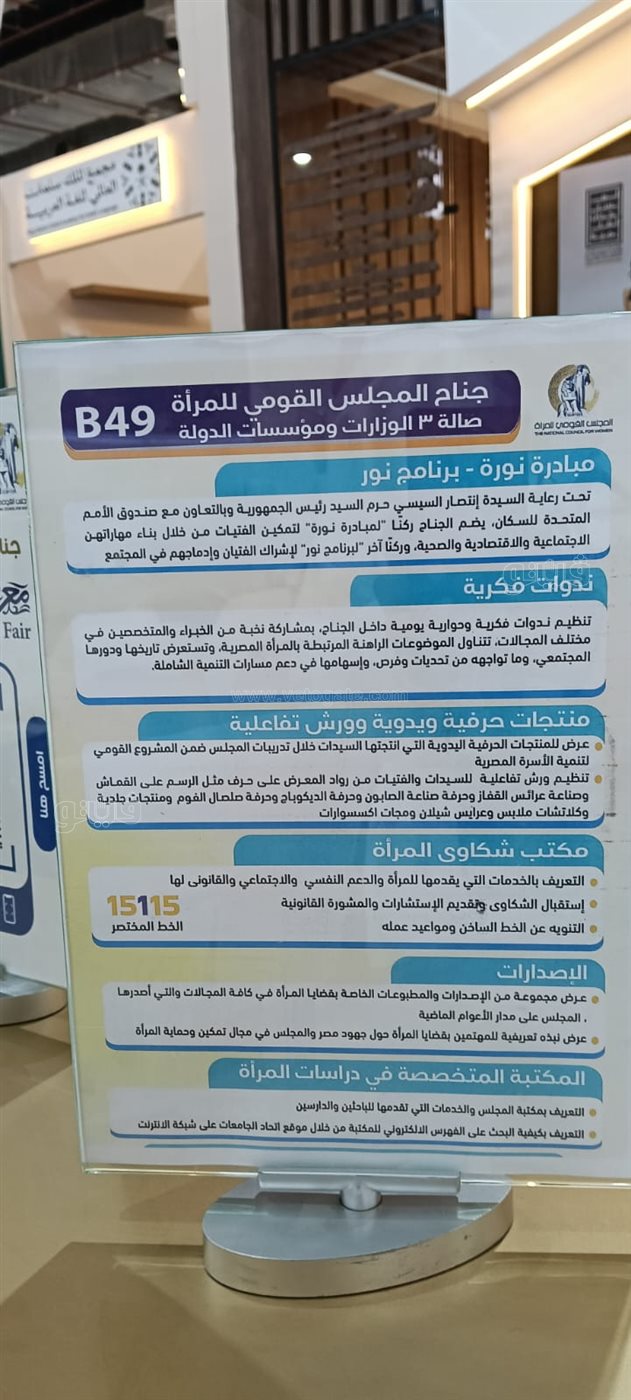 قدم المجلس القومي للمرأة عددا من الندوات التوعية وورش تفاعلية للسيدات ضمن فعاليات معرض القاهرة الدولي للكتاب بدورته الـ 57، وذلك بهدف التعبير عن أهمية المرأة ودورها بالمجتمع.