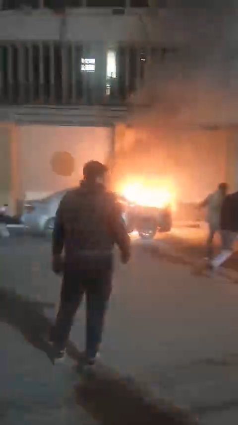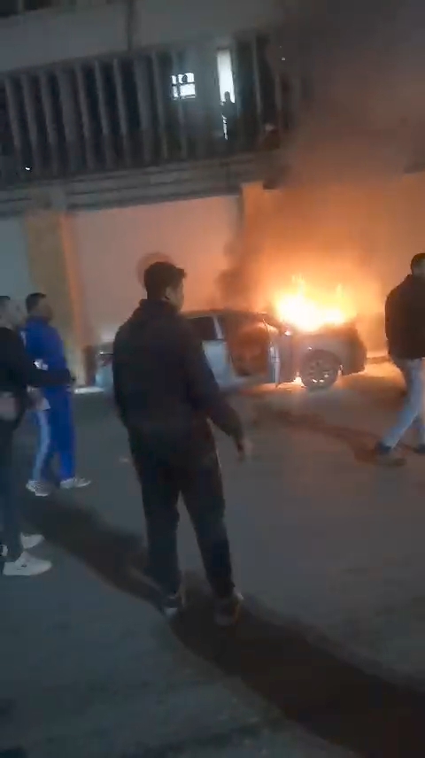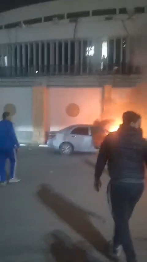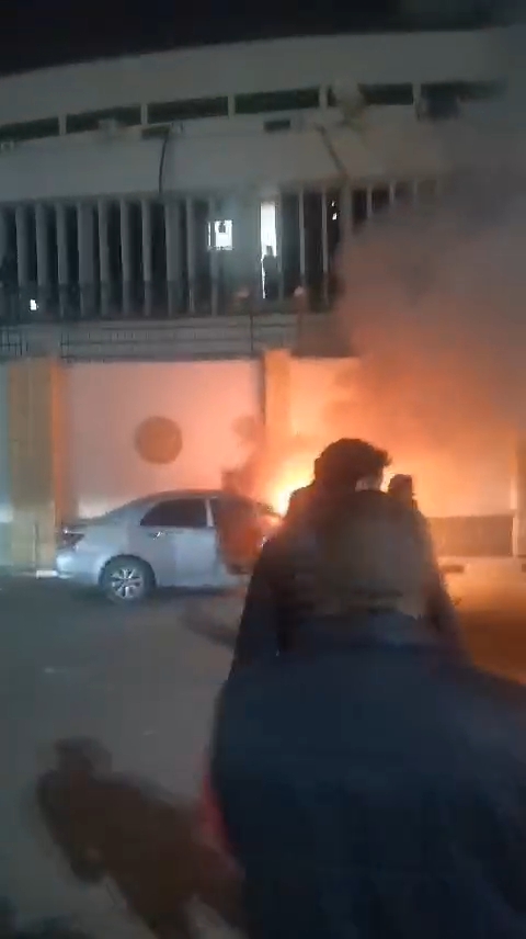 على الفور انتقلت قوة أمنية وسيارات الحماية المدنية إلى موقع اندلاع الحريق في السيارة أمام مبنى المحافظة للسيطرة على الحريق.