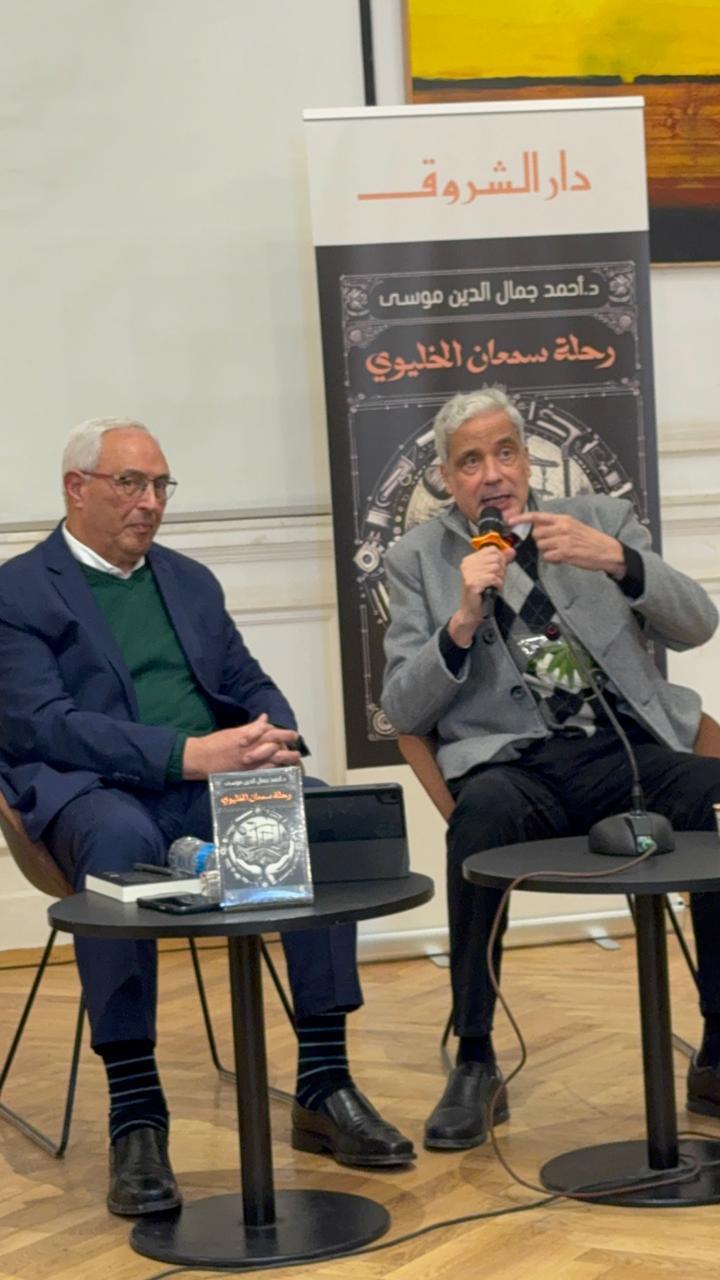ناقش الدكتور أحمد جمال الدين موسى، وزير التعليم الأسبق، اليوم الجمعة، روايته الجديدة تحت عنوان: رحلة سمعان الخليوي، خلال ندوة وحفل توقيع أقيم في مبنى "قنصلية" بوسط القاهرة.