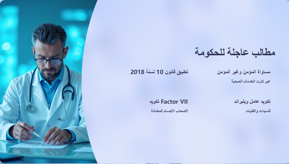 التكويد الفوري: إدراج جميع عوامل التجلط (خاصة فاكتور 7 و9) ضمن أكواد نفقة الدولة بأسعارها الحقيقية لعام 2026.