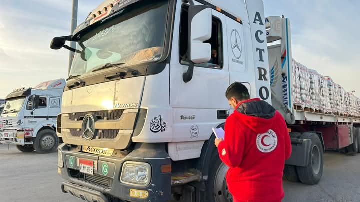 بـ 7 آلاف طن مساعدات، الهلال الأحمر المصري يرسل القافلة 124 إلى غزة