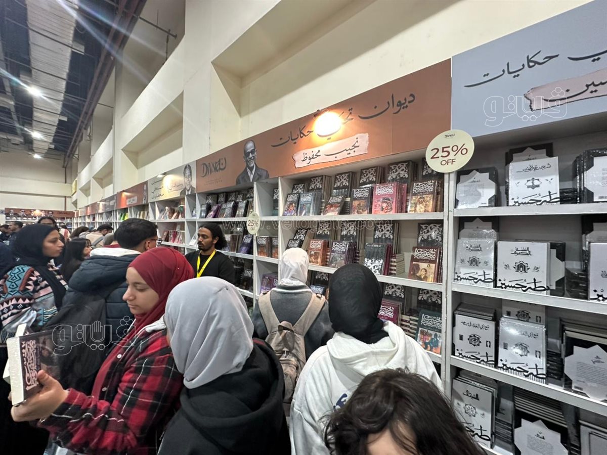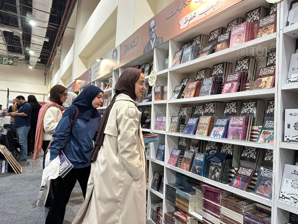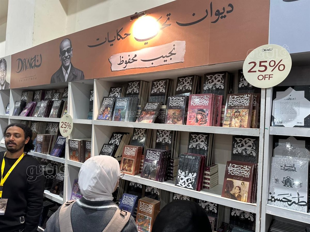 وتتواجد أعمال ومؤلفات الكاتب الكبير نجيب محفوظ داخل جناح مكتبة ديوان في قاعة 1 بالمعرض، حيث تشهد أعماله إقبالا جماهيريا كبيرا من زوار ورواد معرض الكتاب 2026.
