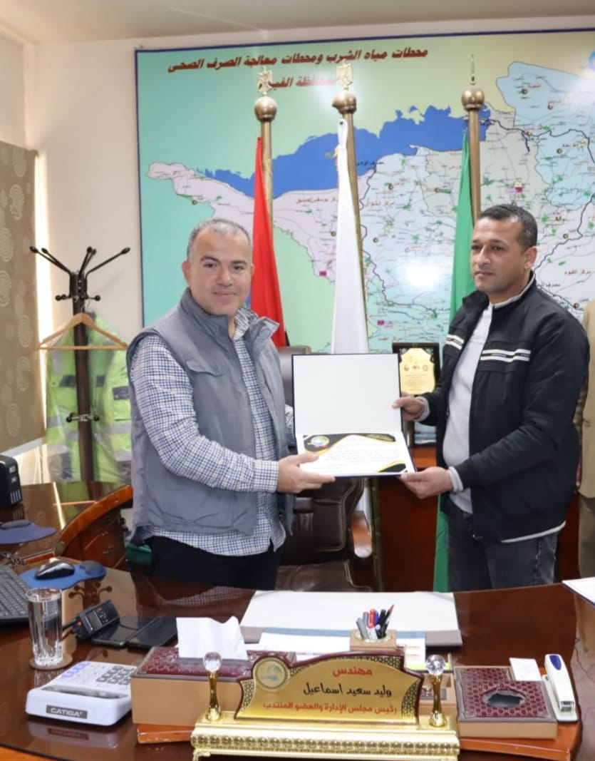 كرم المهندس وليد سعيد، رئيس شركة مياه الشرب والصرف الصحي بالفيوم، أحمد علي صالح، المُحصِّل بالقطاع التجاري فرع الفيوم، تقديرًا لأمانته وإخلاصه في أداء مهام عمله وتميّزه في الالتزام بالقيم المهنية، بعد أن عثر علي مبلغ مالي كبير أثناء العمل، ورده لصاحبه أحد عملاء الشركة.