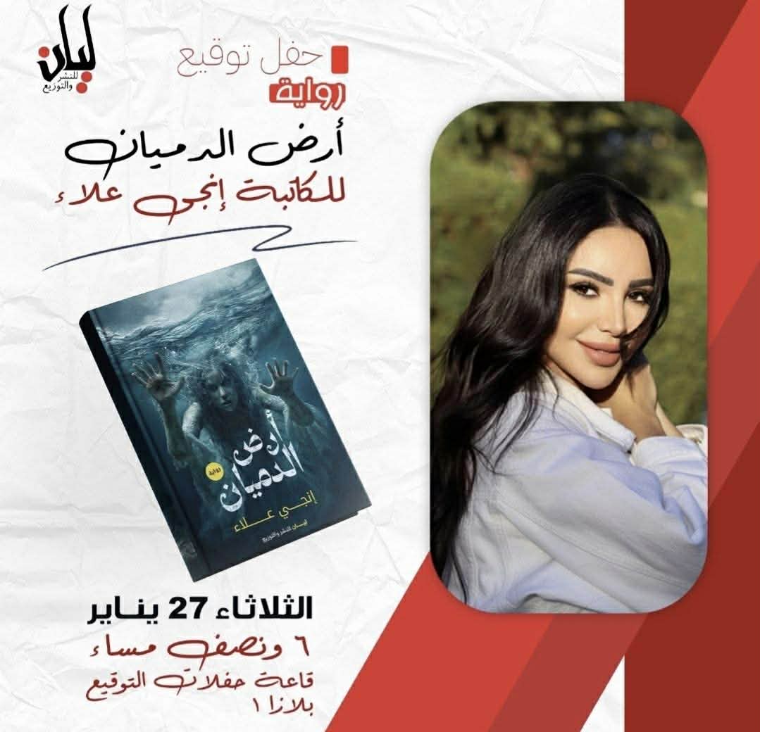 وكتبت إنجي منشورا عبر حسابها الشخصي بموقع التواصل الاجتماعي فيس بوك قالت خلاله: “مستنياكم بكرة الثلاثاء ٢٧ يناير الساعة ٦ ونصف مساءً لحضور حفل توقيع رواية أرض الدميان في معرض القاهرة الدولي للكتاب في قاعة حفلات التوقيع رقم ١ في بلازا،هتشرفوني ومستنية أعرف رأيكم في الرواية ”