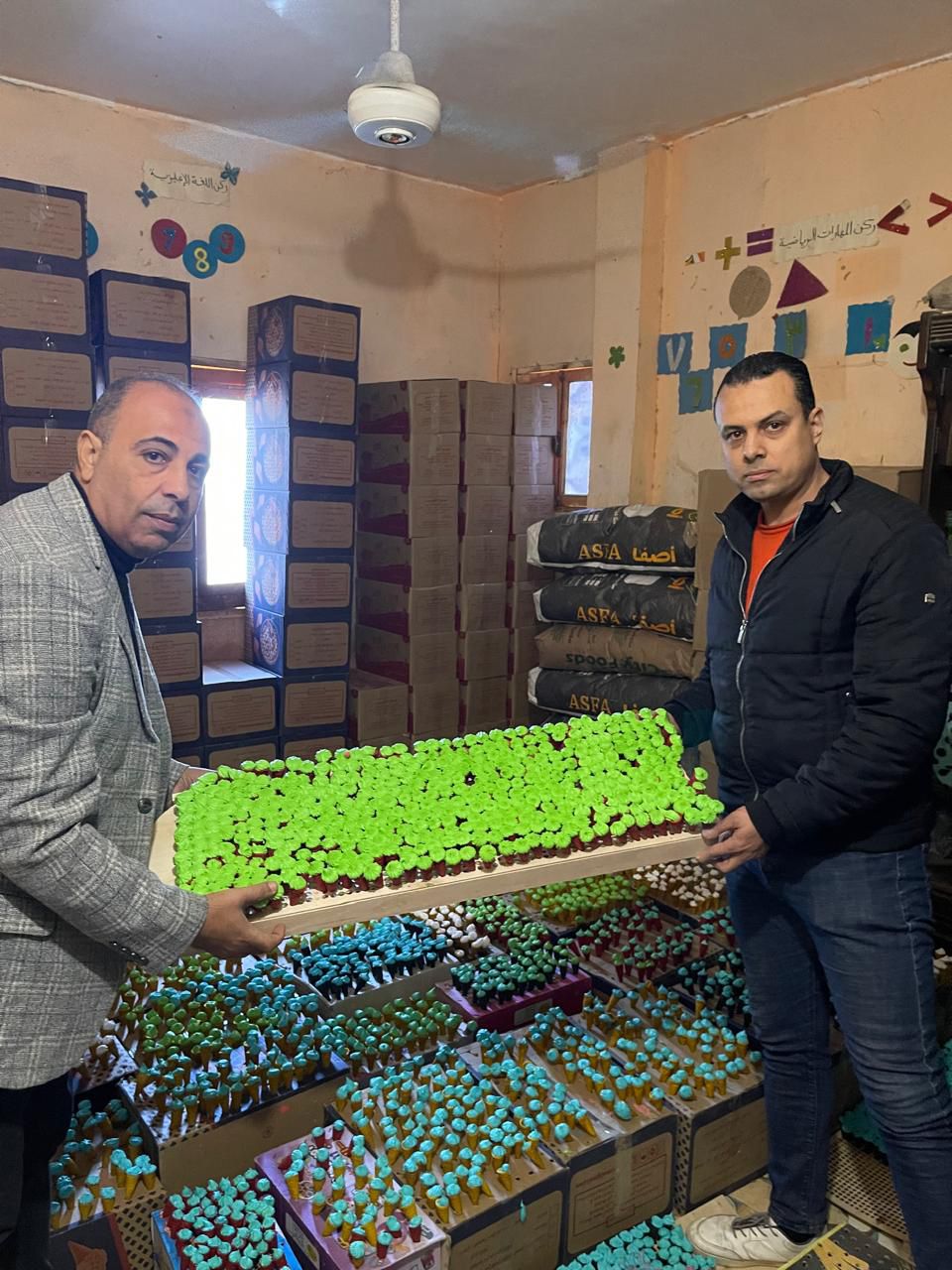 قال المهندس جمعة عبدالحفيظ وكيل وزارة التموين والتجارة الداخلية بمحافظة الفيوم: إن حملة مديرية التموين، تمكنت من ضبط مصنع غير مرخص لتصنيع حلويات للأطفال وعثر بداخله على العديد من المنتجات الغذائية التي تفتقر إلى البيانات الضرورية والعلامات التجارية، وتلاعب صاحب المصنع في تواريخ الإنتاج، وكانت حالة المصنع سيئة للغاية، ما يعرض صحة الأطفال للخطر ، كما تم ضبط أكياس تحتوي على ألوان صناعية غير مدون عليها أي بيانات أو معلومات غذائية، كما ضبطت 29 ألف قطعة بسكويت مخروطي مغطي بحلويات ملونة فاسدة، بالإضافة إلى 3 شكائر من حلويات كرات الفواكه، وشيكارتين من الجيلاتين البودرة.