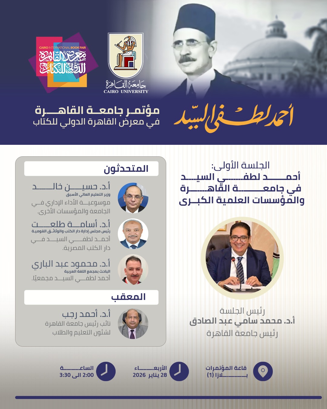 جامعة القاهرة تشارك في تنظيم مؤتمر لإحياء ذكرى أحمد لطفي السيد بمعرض الكتاب