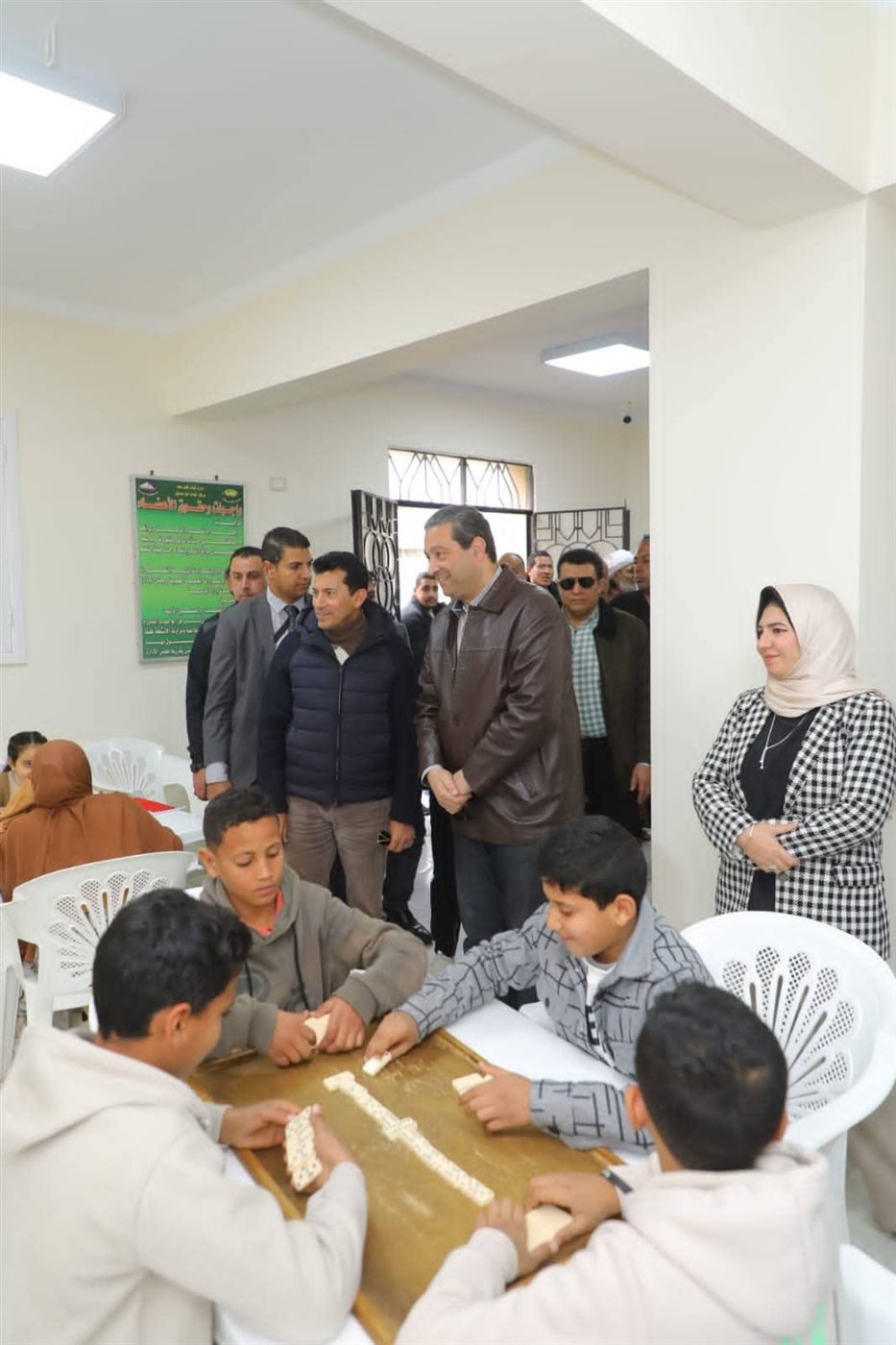 وخلال المراسم تفقد الوزير والمحافظ مستوى التجهيزات الفنية بالملاعب الجديدة واطلعا على الانشطة والمبادرات التي ينفذها صندوق مكافحة وعلاج الادمان والتعاطي بالتعاون مع الادارة المركزية لمراكز الشباب، حيث اكد الدكتور اشرف صبحي ان الوزارة تسعى لتحويل مراكز الشباب الى منارات اشعاع ثقافي وتوعوي بجانب دورها الرياضي، مشيرا الى ان افتتاح هذه الملاعب يهدف الى توسيع قاعدة الممارسة الرياضية واتاحة الفرصة امام المبدعين في القرى والمدن لممارسة هواياتهم في بيئة امنة ومتطورة تساعد على اكتشاف المواهب وصقلها.