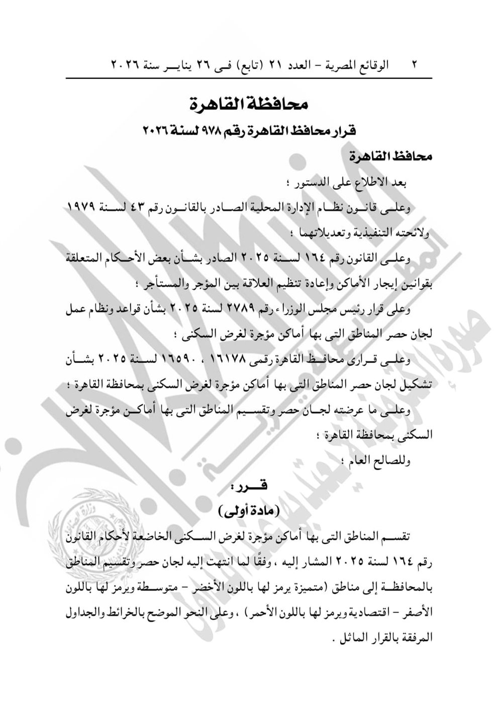 يذكر أن القانون رقم 164 لسنة 2025، نص على زيادة قيمة الأجرة وتحرير العلاقة بين المالك والمستأجر بعد 7 سنوات لغرض السكنى و5 سنوات لغرض التجارى، على أن تكون الزيادة خلال السبع سنوات للسكنى من خلال تقسيم المناطق إلى “ متميزة، متوسطة، اقتصادية”، على أن تكون زيادة قيمة الأجرة فى المناطق المتميزة 20 ضعف الأجرة الحالية بحد أدنى ألف جنيها، وتكون زيادة قيمة الأجرة بالمناطق المتوسطة 10 أضعاف قيمة الأجرة الحالية بحد أدنى 400 جنيه، وأخيرًا المناطق الاقتصادية تكون زيادة قيمة الأجرة 10 أضعاف الأجرة الخالية بحد أدنى 250 جنيهًا مع زيادة سنوية 15 ٪.