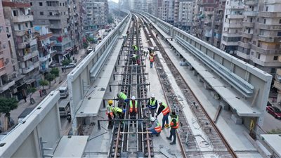 2- جارى تركيب الكمرات لكباري المسار في القطاعات من محطة طوسون وحتى محطة غبريال كما يجرى تنفيذ أعمال الخوازيق والاعمدة والبلاطات للمسار العلوي.