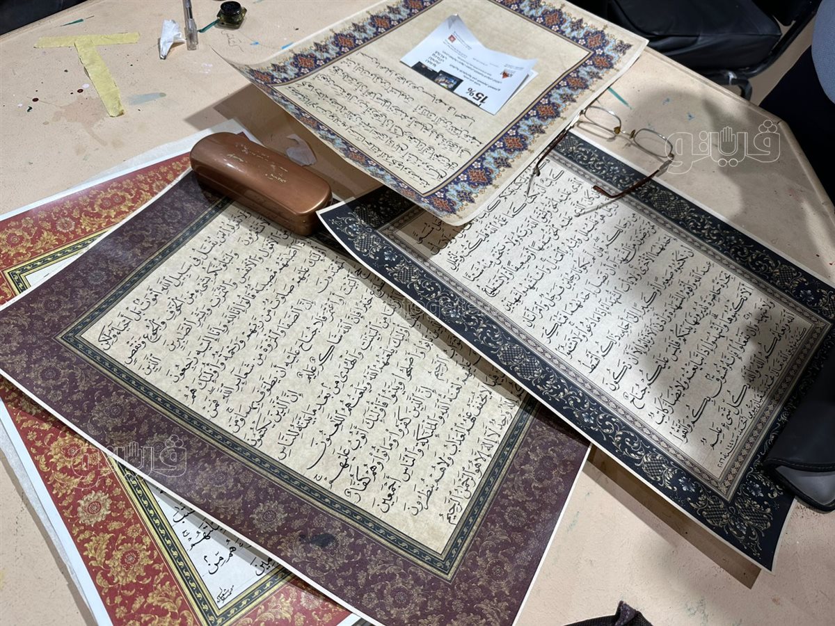 شاهد كيف يكتب المصحف الشريف بأنامل الخطاطين في معرض الكتاب