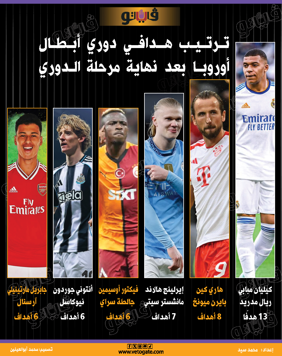 ترتيب هدافي دوري أبطال أوروبا بعد نهاية مرحلة الدوري (إنفوجراف)