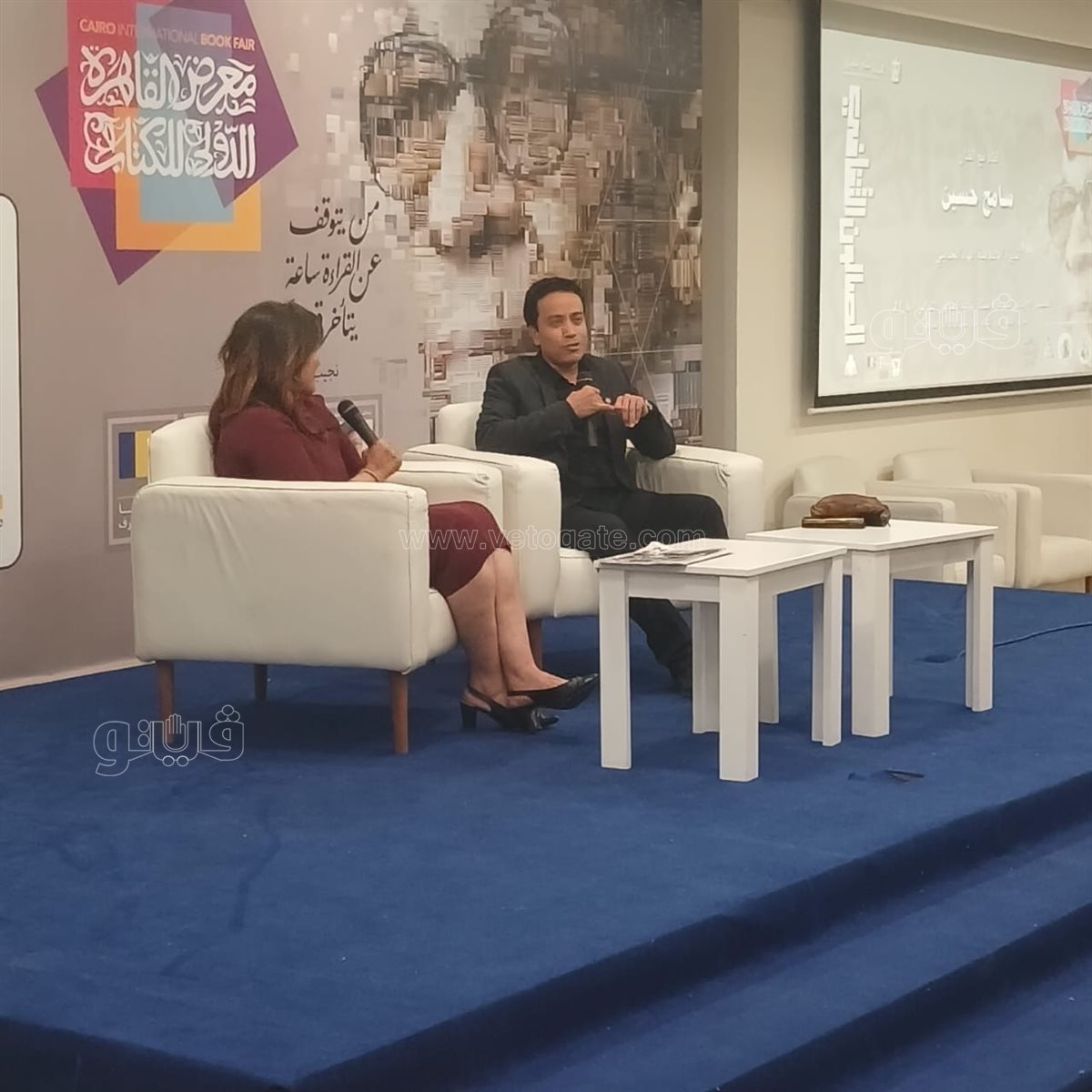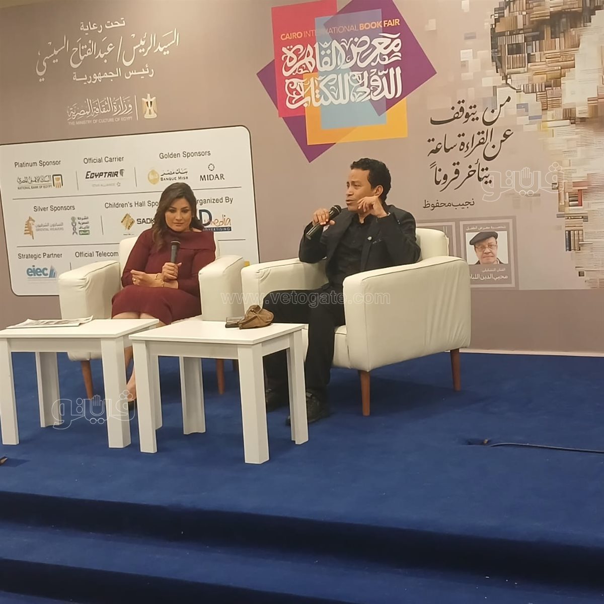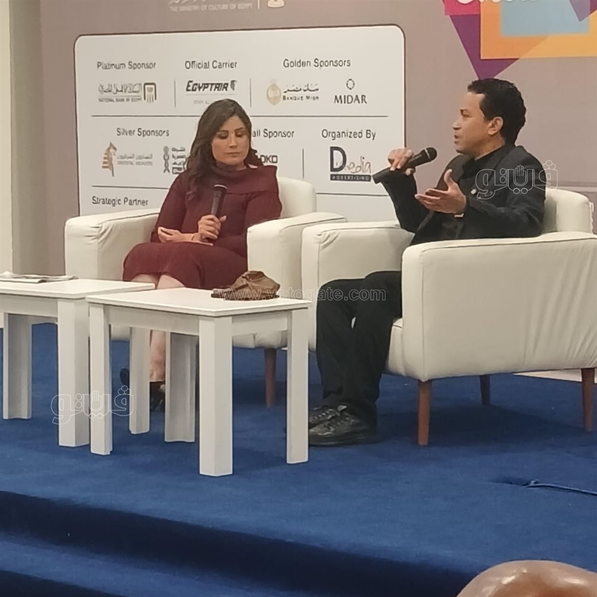تناول اللقاء دور الفنان في دعم الثقافة ونشر الوعي، مشيرا إلى أهمية التواجد داخل الفعاليات الثقافية الكبرى مثل معرض القاهرة الدولي للكتاب، باعتباره مساحة مفتوحة للحوار بين المبدع والجمهور.