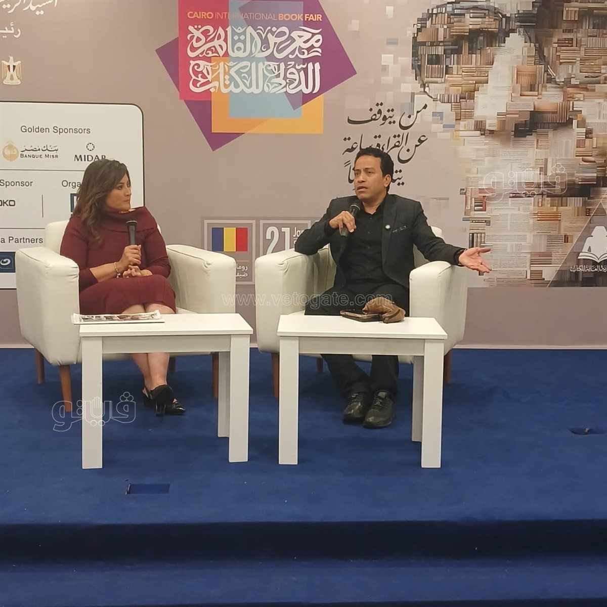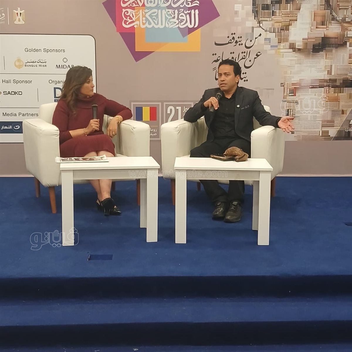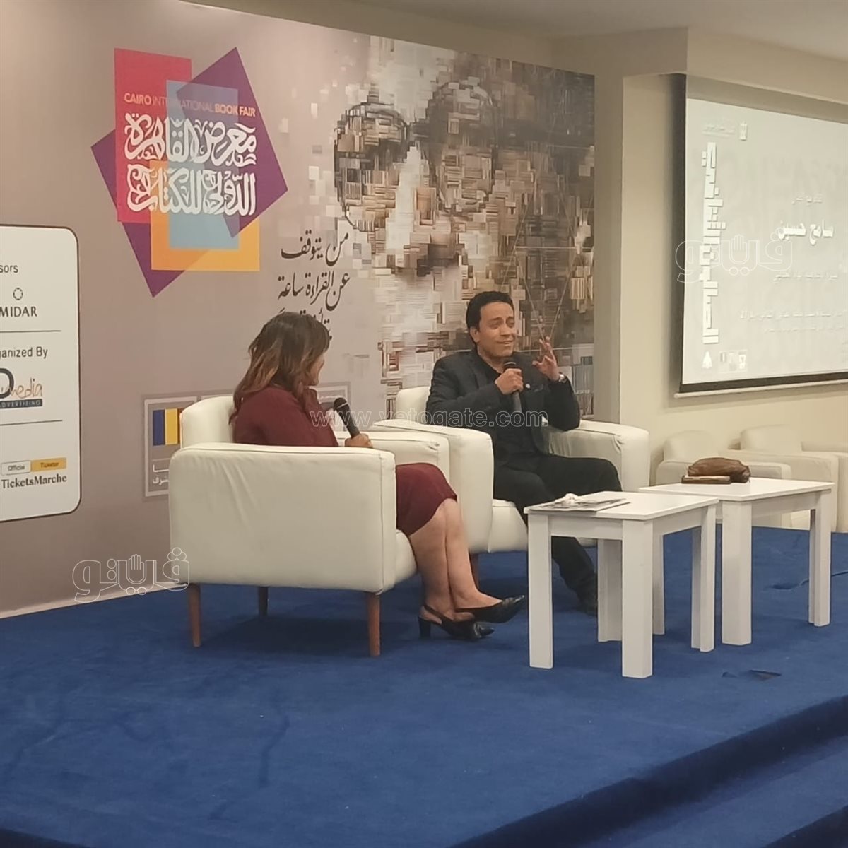 تناول اللقاء دور الفنان في دعم الثقافة ونشر الوعي، مشيرا إلى أهمية التواجد داخل الفعاليات الثقافية الكبرى مثل معرض القاهرة الدولي للكتاب، باعتباره مساحة مفتوحة للحوار بين المبدع والجمهور.