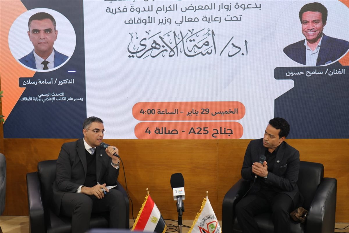 واستضافت الندوة الفنان سامح حسين، وأدار الحوار الدكتور أسامة رسلان - المتحدث الرسمي لوزارة الأوقاف، مدير المكتب الإعلامي، حيث افتُتحت الفعالية بتلاوة قرآنية عطرة قدّمها الشيخ محمد جمال، أحد متسابقي برنامج «دولة التلاوة»، في مشهد عكس التلاقي بين جمال الكلمة وقدسية المعنى.
