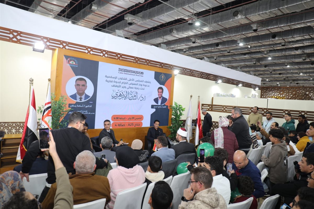 نظّم المجلس الأعلى للشئون الإسلامية، في أجواء ثقافية ثرية ووسط حضور جماهيري لافت، ندوة فكرية كبرى بجناحه في معرض القاهرة الدولي للكتاب، تحت عنوان «الفن الهادف وبناء الوعي»، برعاية الأستاذ الدكتور أسامة الأزهري - وزير الأوقاف، وبإشراف الدكتور أحمد نبوي - الأمين العام للمجلس الأعلى للشئون الإسلامية، وذلك في إطار دور المجلس في ترسيخ الوعي الثقافي وتعزيز مكانة الفن الهادف بوصفه أداة فاعلة في بناء الوجدان والهوية.