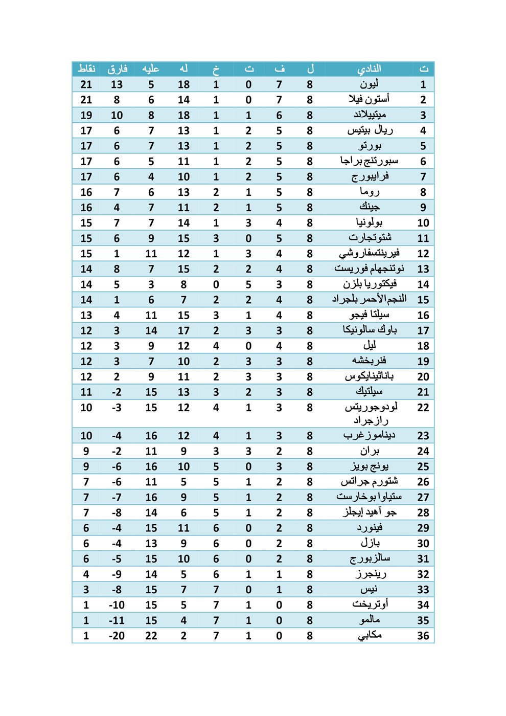 ترتيب الدوري الأوروبي بعد انتهاء مرحلة المجموعات