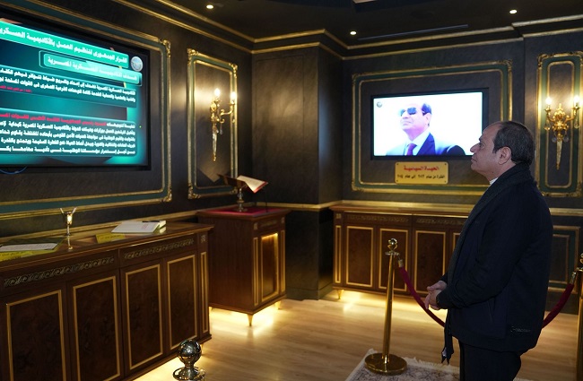 وذكر المتحدث الرسمي أن الرئيس اختتم الجولة التفقديّة بالأكاديمية العسكرية المصرية، بمشاهدة عرض للسجل التاريخي الإلكتروني بواسطة مدير الأكاديمية.
