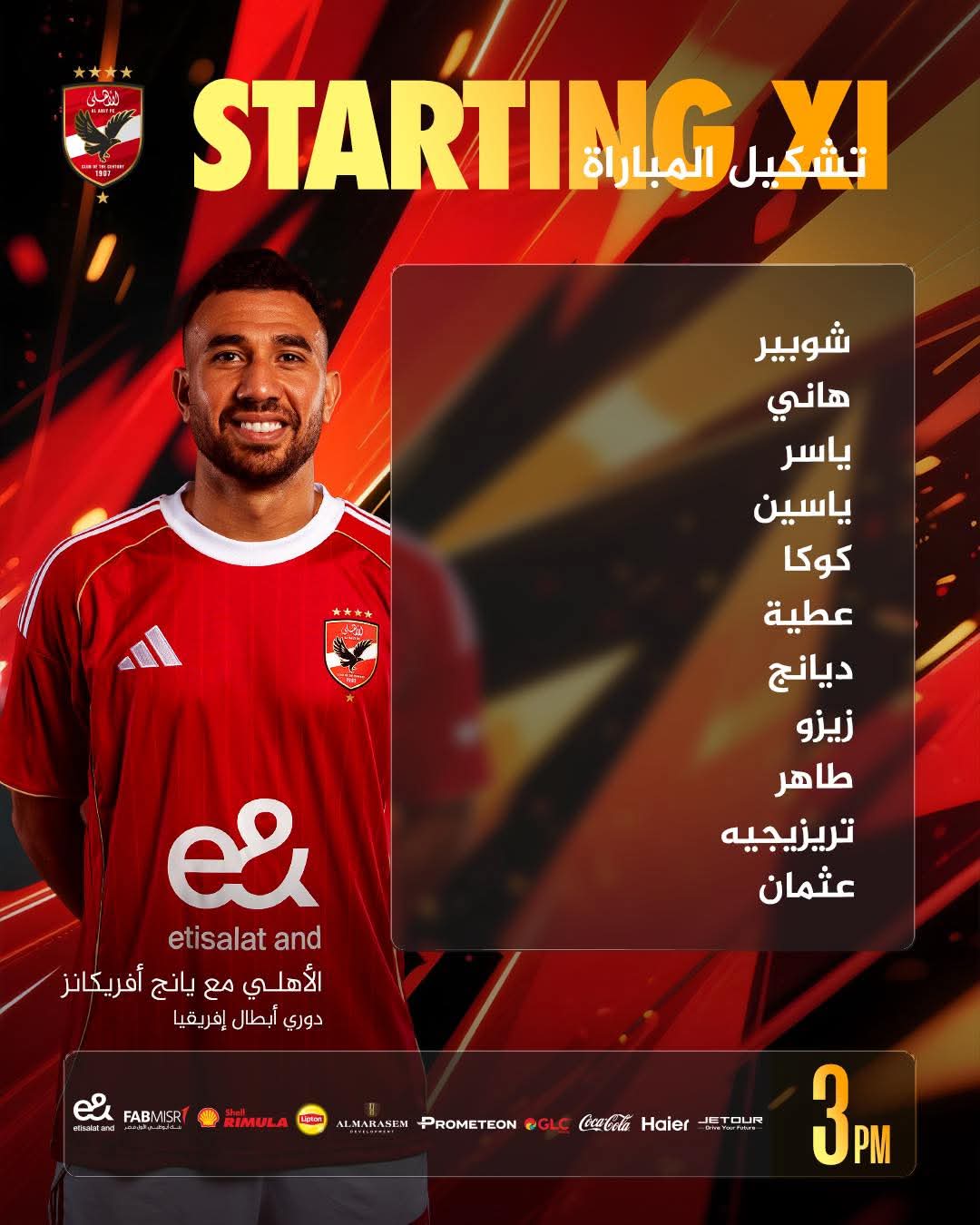 خط الوسط: أليو ديانج – مروان عطية – محمد علي بن رمضان – أحمد سيد زيزو – حسين الشحات – طاهر محمد طاهر – أشرف بن شرقي – محمود حسن تريزيجيه.