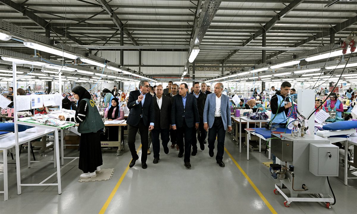 رئيس الوزراء يتفقد مصنع الجيزة للملابس الجاهزة