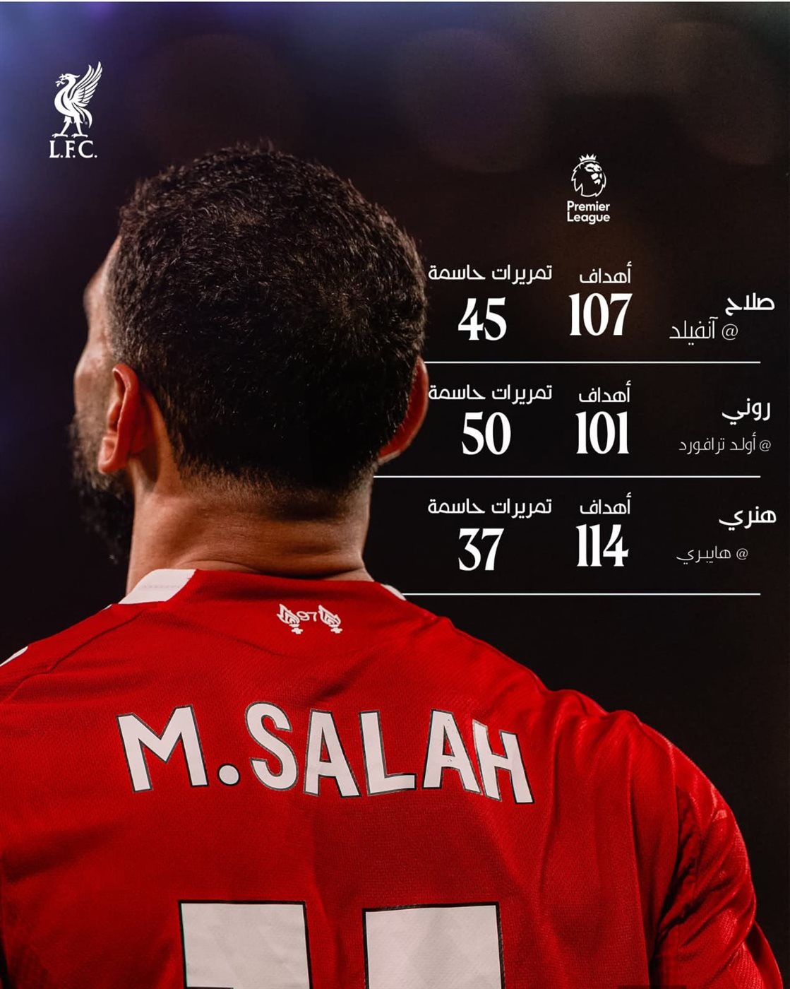 وساهم محمد صلاح في 152 هدفًا في الدوري الإنجليزي على ملعب "الأنفيلد"، حيث سجل 107 وصنع 45.
