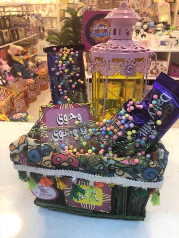 وتضم البوكسات الرمضانية التى تصلح للهدايا فى شهر رمضان المبارك " فانوس ومصحف وسجادة صلاة وسبحة الكترونية وبعض الهدايا الاخرى مثل العروسة والشيكولاتة او العطور المختلفة"