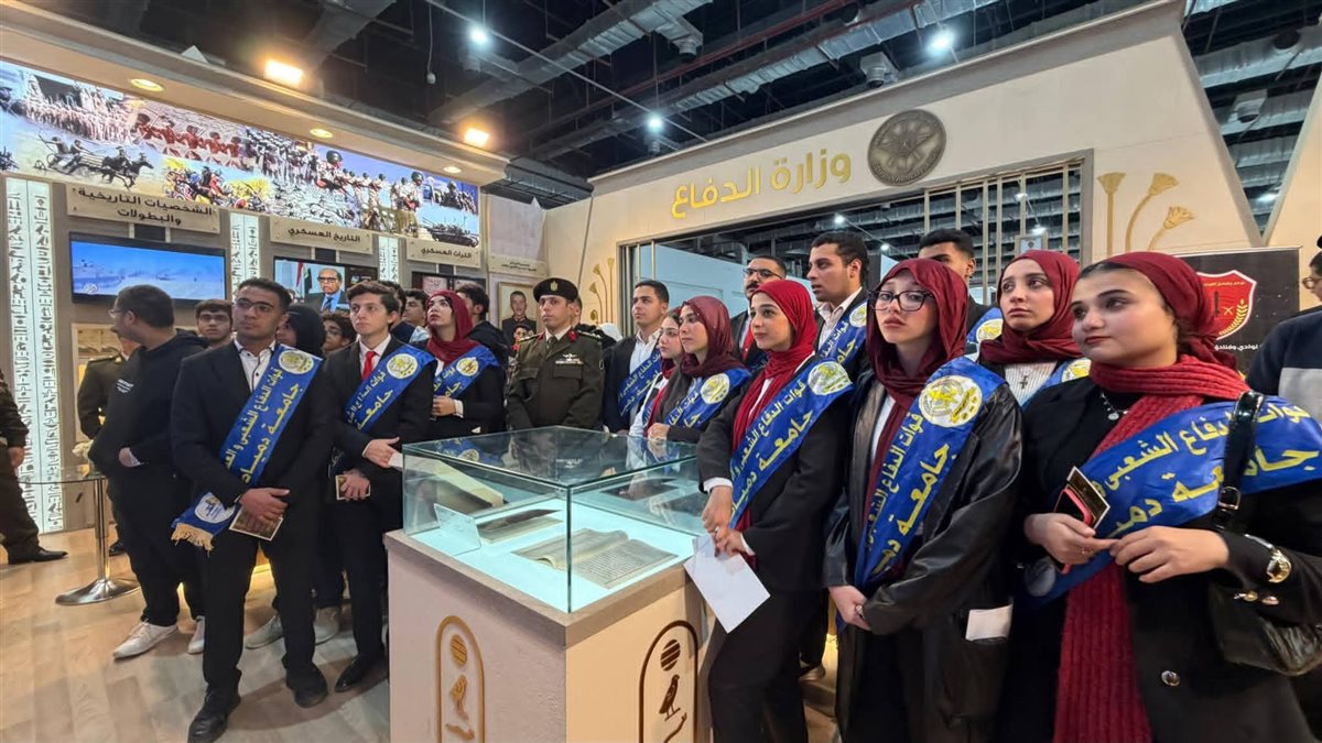 وفد طلابي من جامعة دمياط يزور جناح وزارة الدفاع بمعرض الكتاب