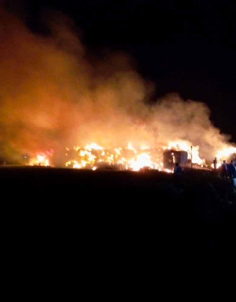حريق هائل في شونة قش خلف البنك الزراعي بقرية بشبيش بالغربية