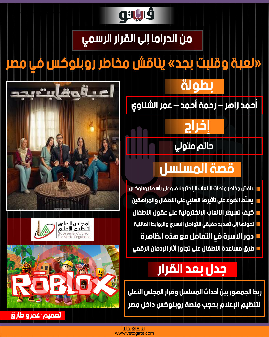 من الدراما إلى القرار الرسمي.. «لعبة وقلبت بجد» يناقش مخاطر روبلوكس في مصر (إنفوجراف)