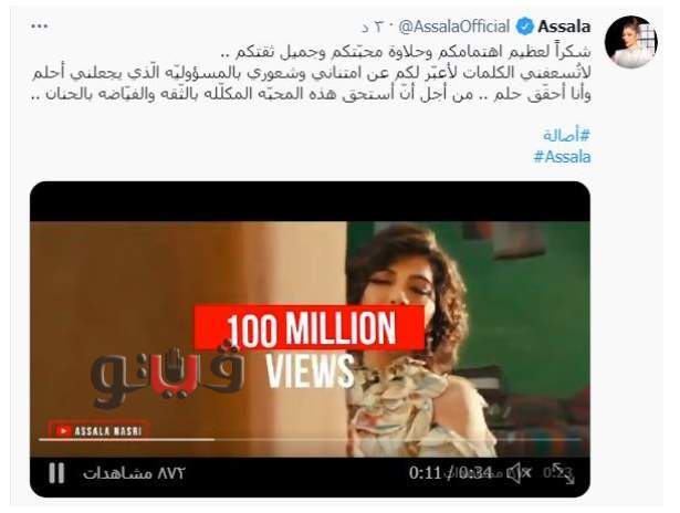 ونشرت أصالة فيديو لها، عبر صفحتها الرسمية بموقع التدوينات القصيرة "تويتر"، وعلقت عليها قائلة: "شكرًا لعظيم اهتمامكم وحلاوة محبتكم وجميل ثقتكم".