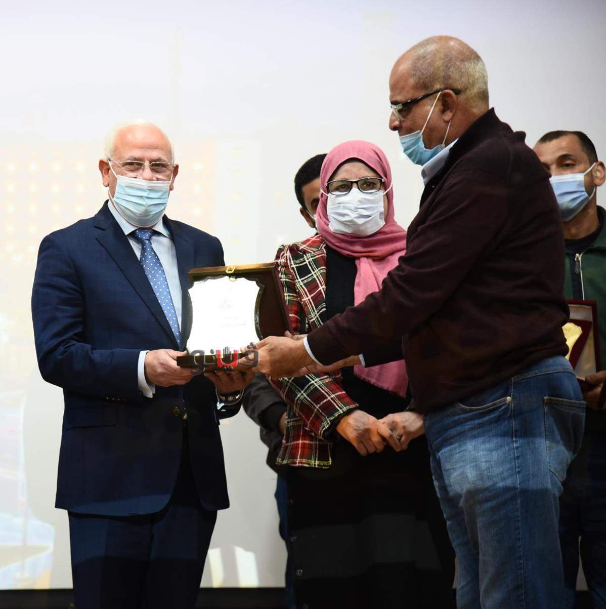 وفي نهاية الحفل قام المحافظ بتوزيع الدروع وشهادات التقدير على المساهمين في المبادرة.