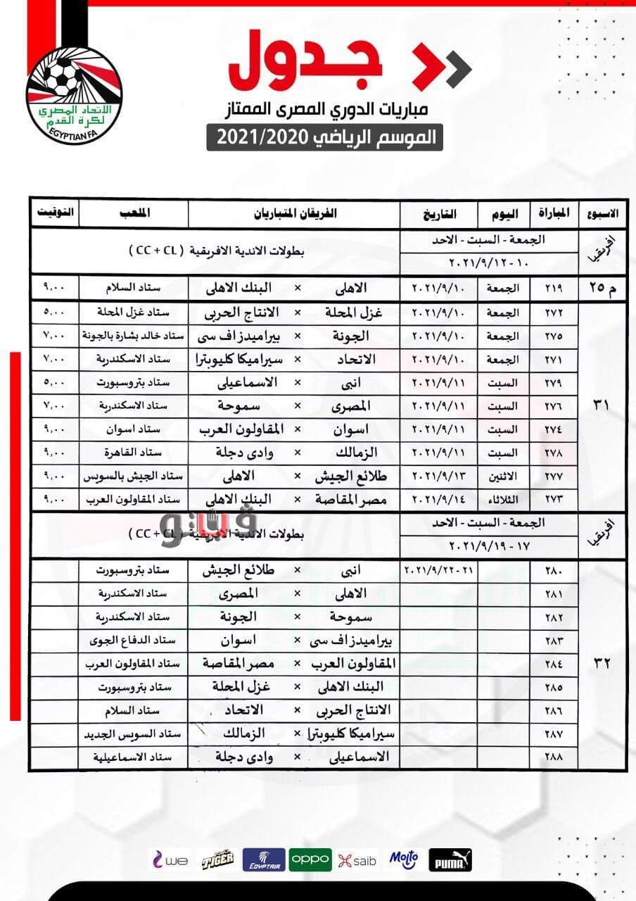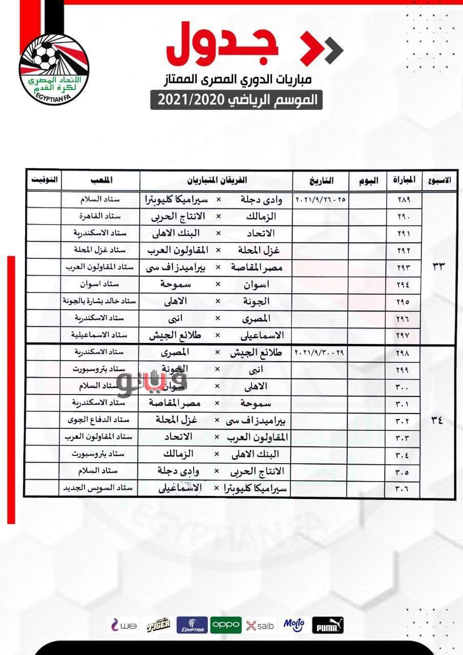 أعلنت إدارة المسابقات بالاتحاد المصري لكرة القدم مواعيد الجولات المتبقية من مسابقة دوري القسم الأول من الجولة حتى الجولة 22 وحتى الجولة 34 والأخيرة المحدد لها 30 سبتمبر المقبل.