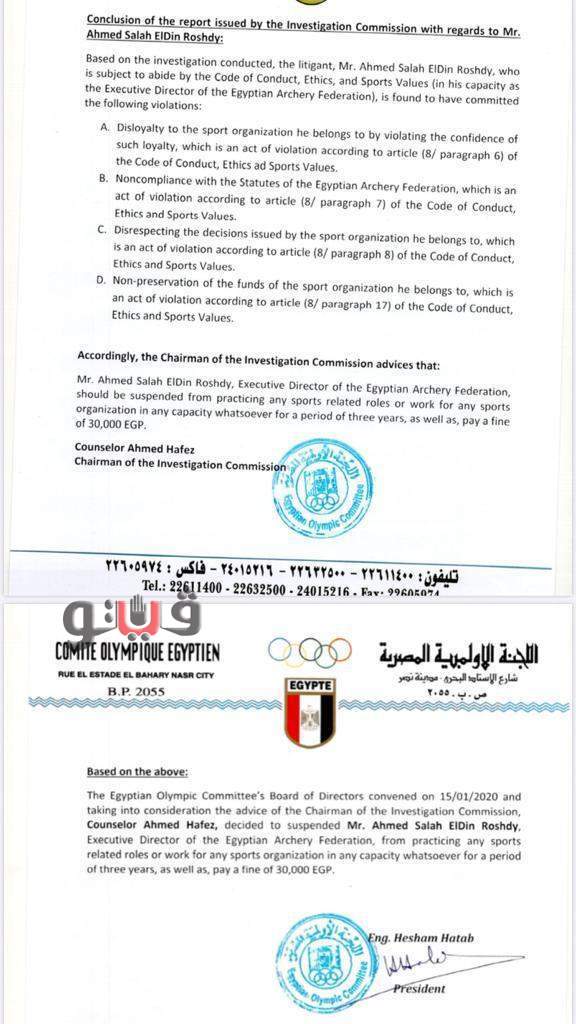 وأكد رشدي في شكواه أنه تعرض لحرب شرسة خلال الفترة الماضية، مضيفا أنه حكم في الاتحاد المصري للقوس والسهم منذ عام ٢٠٠١ وحكم قاري منذ ٢٠٠٨ وحكم دولي ومدير تنفيذي وأمين عام في الاتحاد منذ ٢٠١٠.